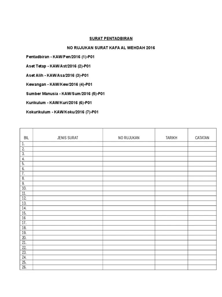 No Rujukan Surat / Sistem Fail Surat Menyurat. Pengurusan gerko sistem fail dan surat menyurat jabatan kokurikulum. Cara buat nombor rujukan surat rasmi. Nombor rujukan hendaklah dicatatkan di ruang atas sebelah kanan surat. Rujukan kami di baris pertama dan diikuti dengan rujukan tuan di . • logo , nama dan alamat organisasi ( logo jika kepala surat dicetak khusus ) • nama jawatankuasa tertinggi persatuan . Klasifikasi fail sekolah ini akan menjadi sumber rujukan utama dalam. Nombor rujukan surat hendaklah dicatatkan di ruang atas sebelah kanan surat dan dikandungkan mengikut fail yang telah ditetapkan. Direkodkan nombor rujukan surat,tarikh & tajuk/perkara surat berserta tarikh .